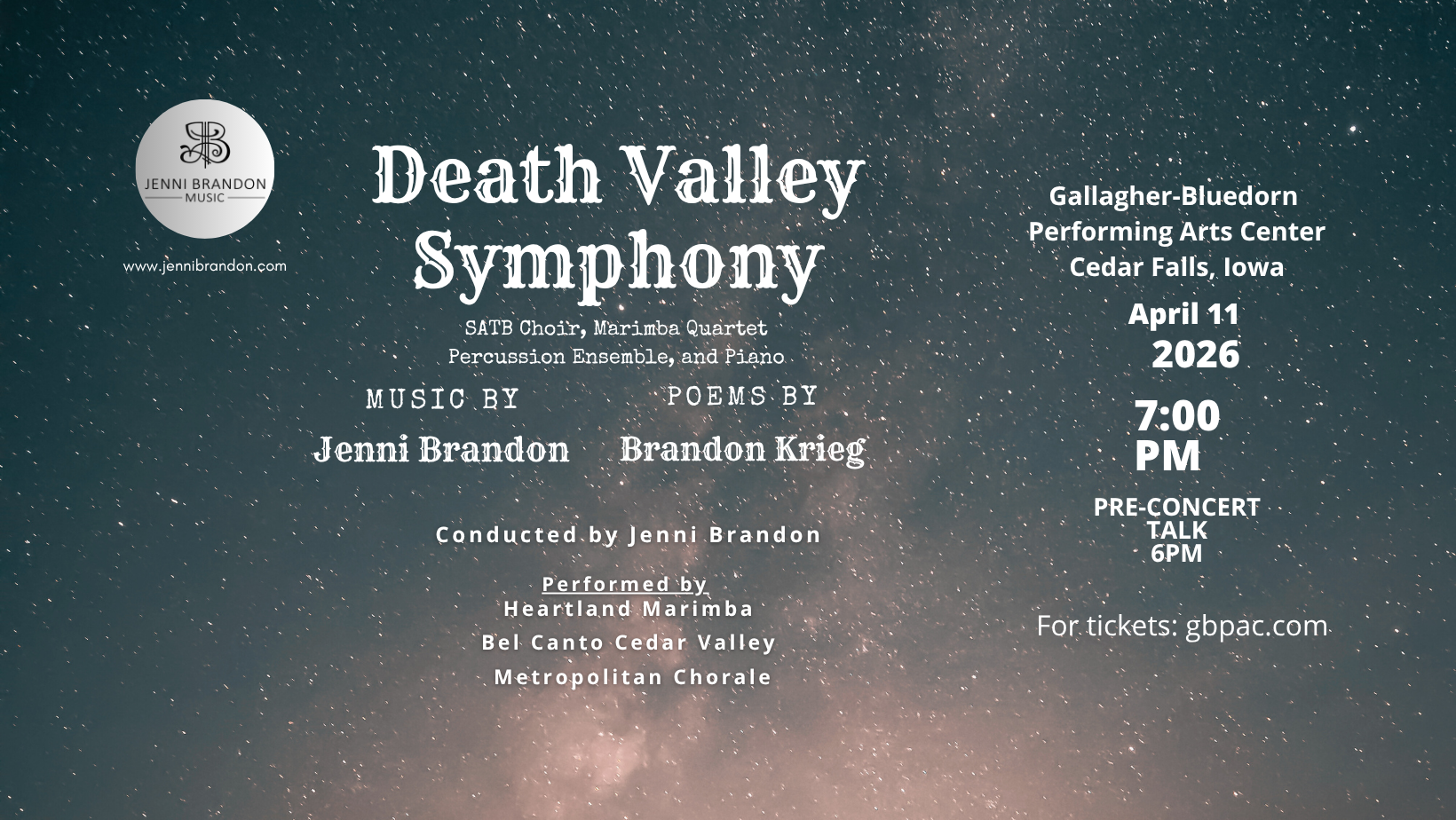 Dark Skies and Distant Worlds – April 11, 2026, 7:30 P.M.Gallagher-Bluedorn Performing Arts Center, Cedar Falls, IATickets: Dark Skies and Distant Worlds with Heartland Marimba | GBPAC Jenni will conduct […]