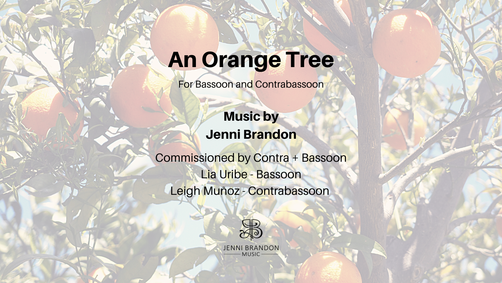 An Orange Tree for bassoon and contrabassoon is inspired by the poem “Hay un naranjo ahí” by Alfonso Quijada Urías and its translation “There’s an Orange Tree Out There” by Darwin J. Flakoll. There is hope in this work as it explores and honors a story of remembrance, of the immigrant experience, and the ability to start a new life in a new land. Using the unique colors of the bassoon and contrabassoon, there is a conversation between these two instruments as they explore how an orange tree “out there, behind that old, abandoned garden wall” reminds us of an orange tree planted in a distant land before coming to this new place.