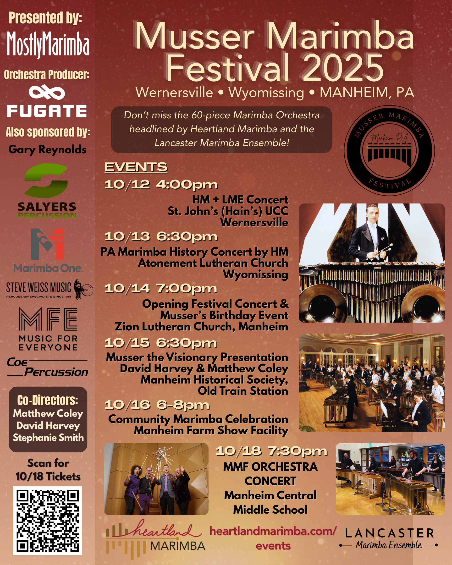 Manheim, Pennsylvania Manheim, PA, United StatesThe Musser Marimba Festival takes place October 12-15, 2025 in Manheim, Pennsylvania