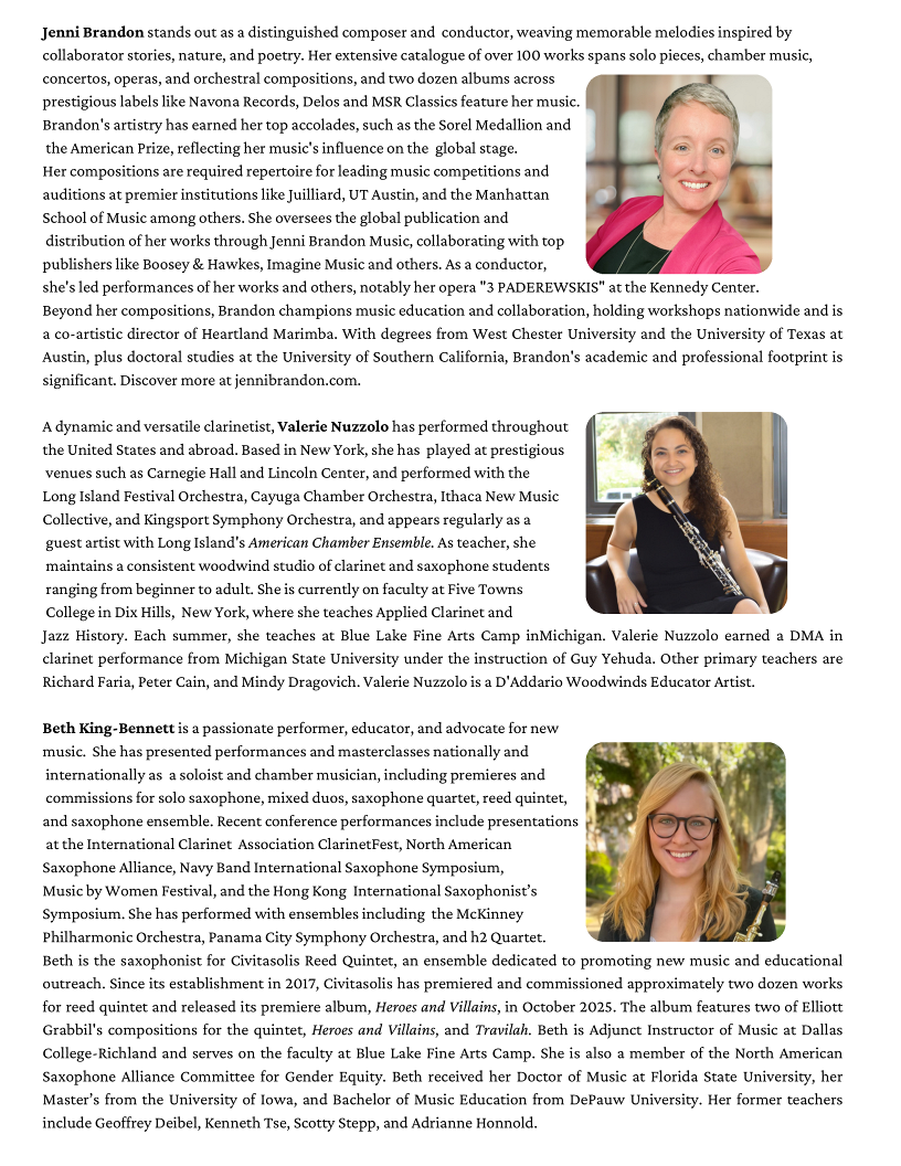Lead commissioners Valerie Nuzzolo (Clarinet) and Beth King-Bennett (Saxophone) invite performers to join a commissioning consortium for a new duet by American composer Jenni Brandon.